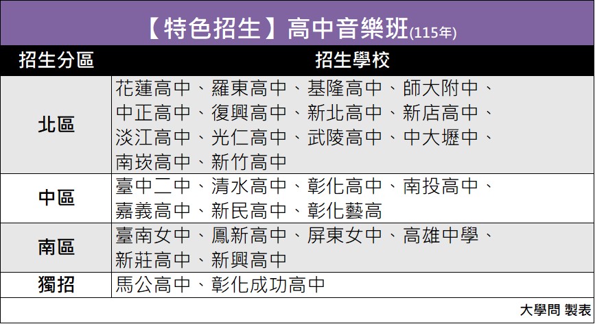 ★各區音樂班簡章請見:藝才班線上報名登錄系統